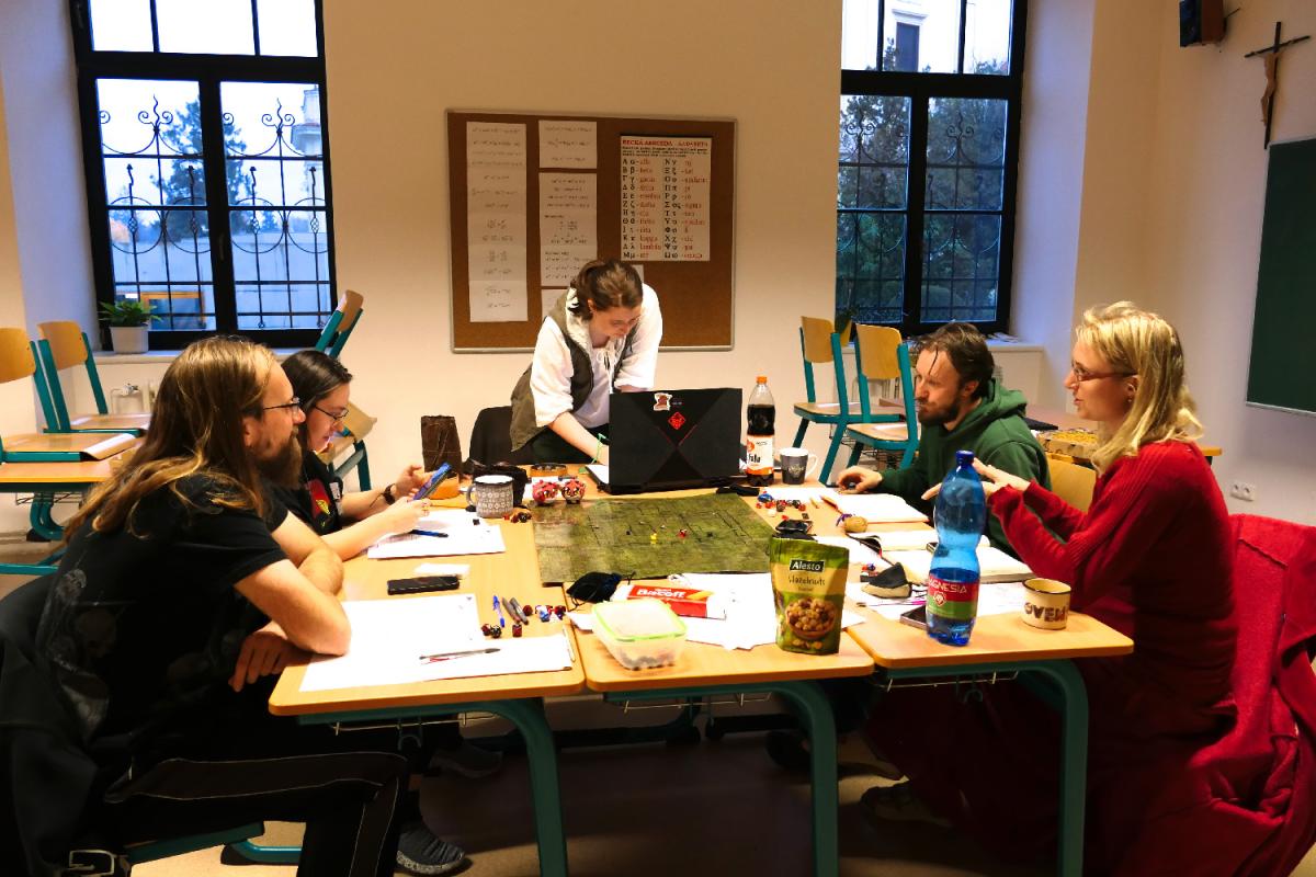 Jedním z největších kouzel her na hrdiny je společné vytváření příběhů, vykonávání hrdinských skutků, o nichž pak pějí v krčmách trubadůři nebo si je v bázni šeptají zločinci skrývající se ve stínu. Vytváření příběhů Vašich družin a nám, PJům, kteří Soumrakon chystáme, se líbí představa, že hráči mohou ve světě zanechat svou stopu. I proto jsme se rozhodli pro něco, co jsme na jiných conech zatím nepotkali, a to nechat Vás vytvářet svět kolem Nové Stráže a jeho příběh spolu s námi.